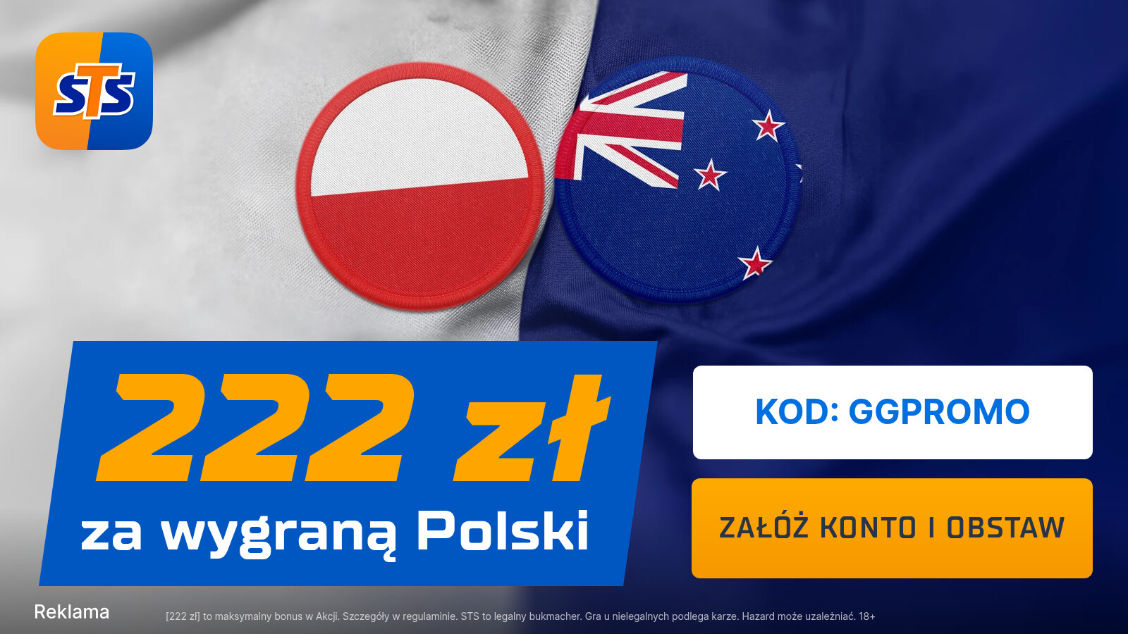 222 PLN bonusu za wygraną Polski z Nową Zelandią od STS