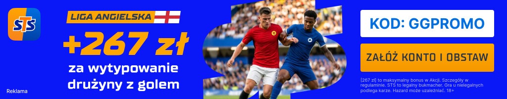 W sobotę czeka nas hit Premier League. Chelsea podejmować będzie Manchester United. STS przygotował specjalną promocję dla nowych graczy, którzy zarejestrują się do STS po kliknięciu w poniższy baner. Polski legalny bukmacher płaci 267 zł za wskazanie drużyny z golem w meczu Chelsea – Manchester United. Promocja łączy się z ofertą powitalną, a więc możesz zyskać jeszcze 660 zł! Sprawdź STS kod promocyjny. Szczegóły promocji poniżej.