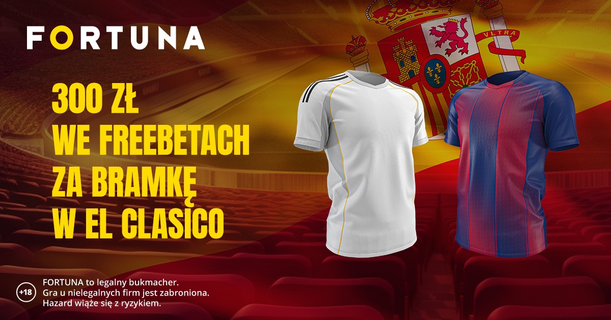 300 zł za bramkę w El Clasico od Fortuny – łącznie aż 625 zł na start!