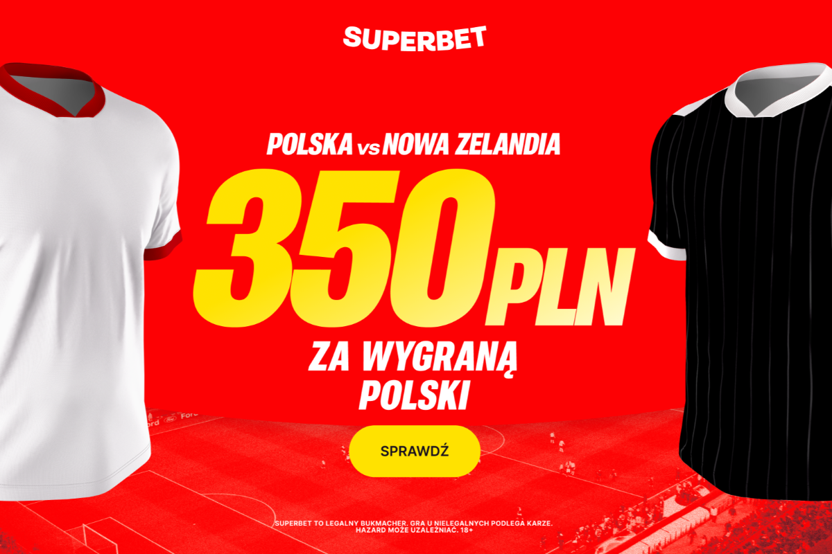 Jeżeli dotychczas nie zakładałeś konta gracza u bukmachera Superbet, to rewelacyjna okazja na rejestrację nadarza się przy okazji spotkania Polska – Nowa Zelandia. Wspomniany bukmacher proponuje bowiem aż 350 PLN za wykorzystanie naszego kodu promocyjnego Superbet i trafienie zakładu na wygraną reprezentacji Polski z Nową Zelandią w czwartkowym spotkaniu towarzyskim!