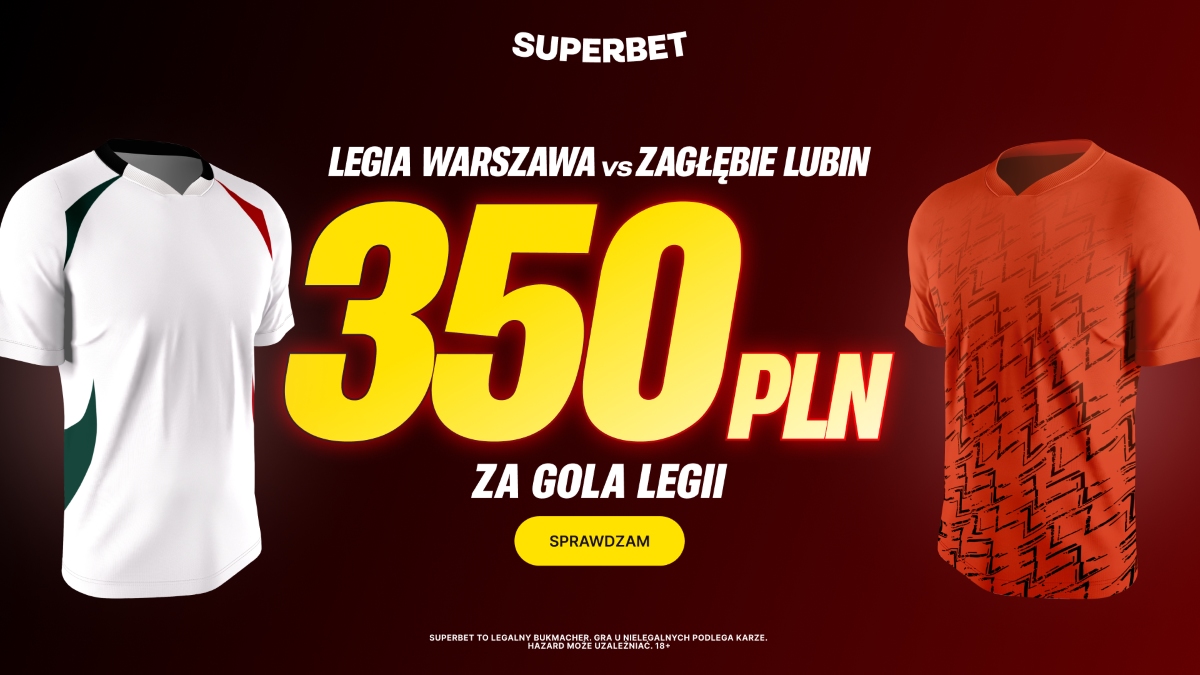 Superbet przygotował z tej okazji specjalną promocję. Polski legalny bukmacher płaci aż 350 złotych za gola Legii z Zagłębiem, a do tego możesz skorzystać z bonusów na start! Promocja dostępna jest dla nowych graczy, którzy założą konto z kodem GRAMGRUBO.