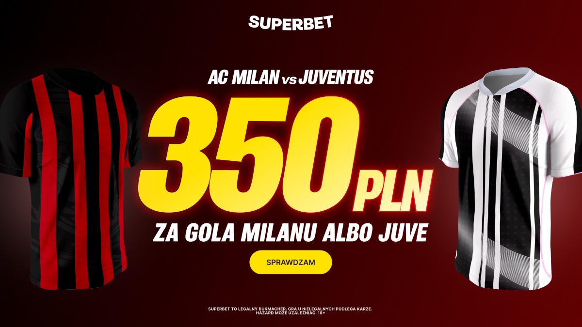 Superbet przygotował z tej okazji specjalną promocję. Polski legalny bukmacher płaci aż 350 złotych za gola Milanu albo Juventusu, a do tego możesz skorzystać z bonusów na start! Promocja dostępna jest dla nowych graczy, którzy założą konto z kodem GRAMGRUBO.