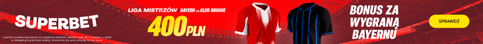 Teraz Bawarczycy zmierzą się z Club Brugge i również będą murowanymi faworytami. U bukmachera Superbet można jednak zgarnąć aż 400 zł za wytypowanie ich zwycięstwa w środowym starciu! Szczegóły promocji odszukasz poniżej.