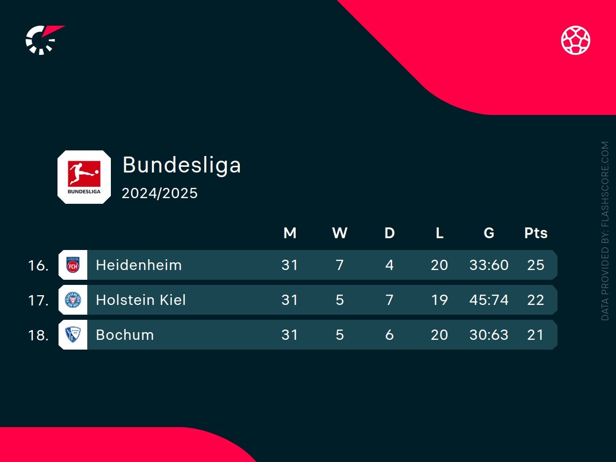 - Heidenheim: (3-5-2): Muller; Mainka, Gimber, Sierseleben; Traore, Busch, Schoppner, Scienza, Kratzig; Beck, Pieringer