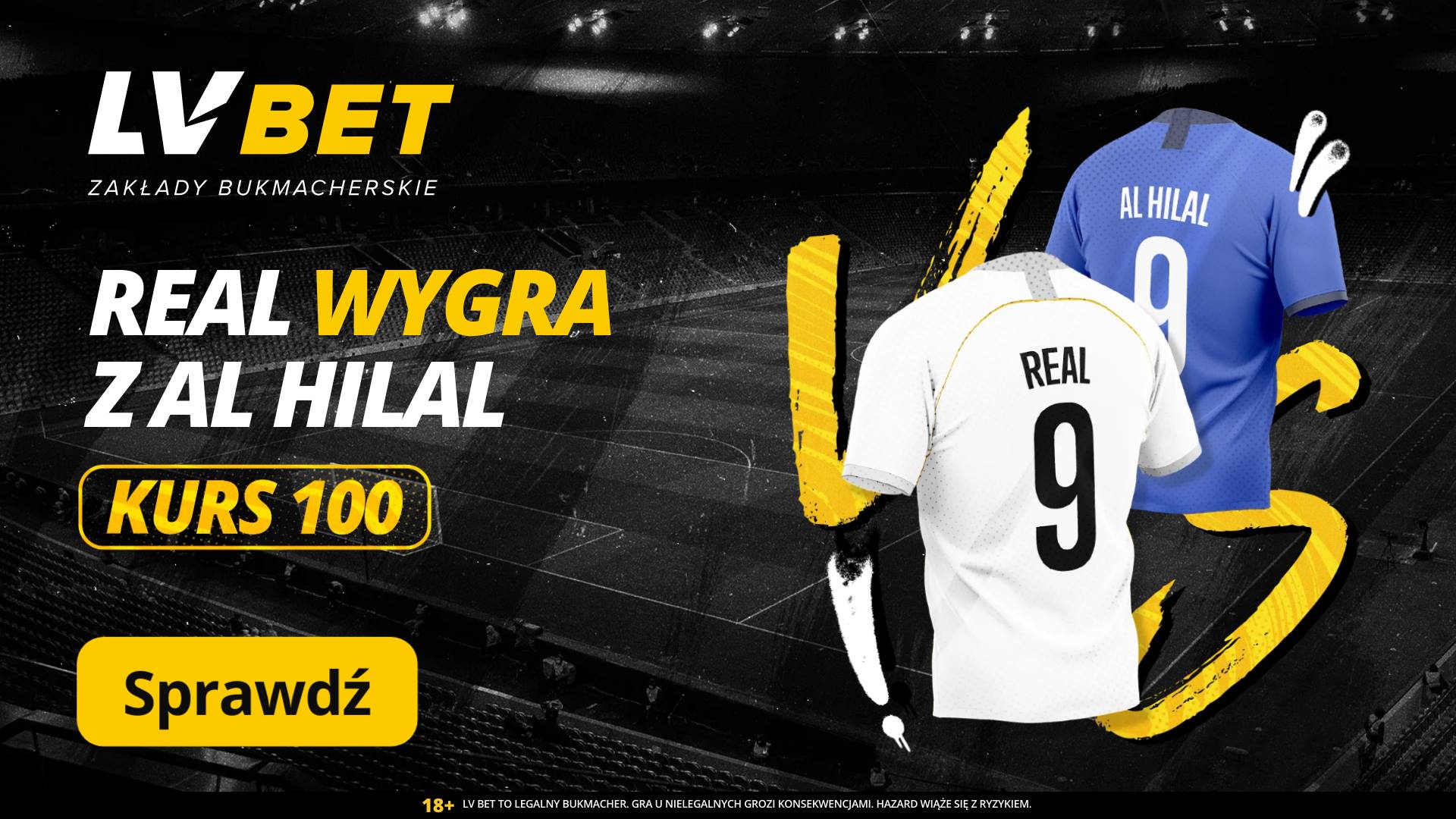 Promocja bukmacherska na mecz Real Madryt – Al-Hilal. W środę 18.06 o 21:00 odbędzie się pojedynek Realu Madryt z Al-Hilal. Królewscy są zdecydowanymi faworytami tego spotkania, choć w składzie gości nie brakuje znanych nazwisk. Z okazji tego meczu specjalną promocję przygotował LV BET. Nowi gracze, którzy zarejestrują się z kodem GRAMGRUBO, będą mogli zagrać zakład na wygraną Realu Madryt z Al-Hilal po mega kursie 100 jako bonus powitalny w LV BET! Ponadto promocja ta łączy się ze standardowym bonusem powitalnym!