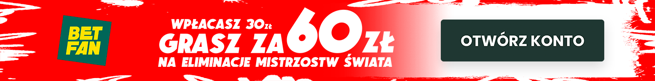 SPECJALNA PROMOCJA! Wpłacasz 30, grasz za 60, a ponadto możesz skorzystać z bonusów od drugiego i trzeciego depozytu! Zarejestruj się z kodem promocyjnym BETFAN „GRAMGRUBO60”, po szczegóły kliknij w poniższy baner