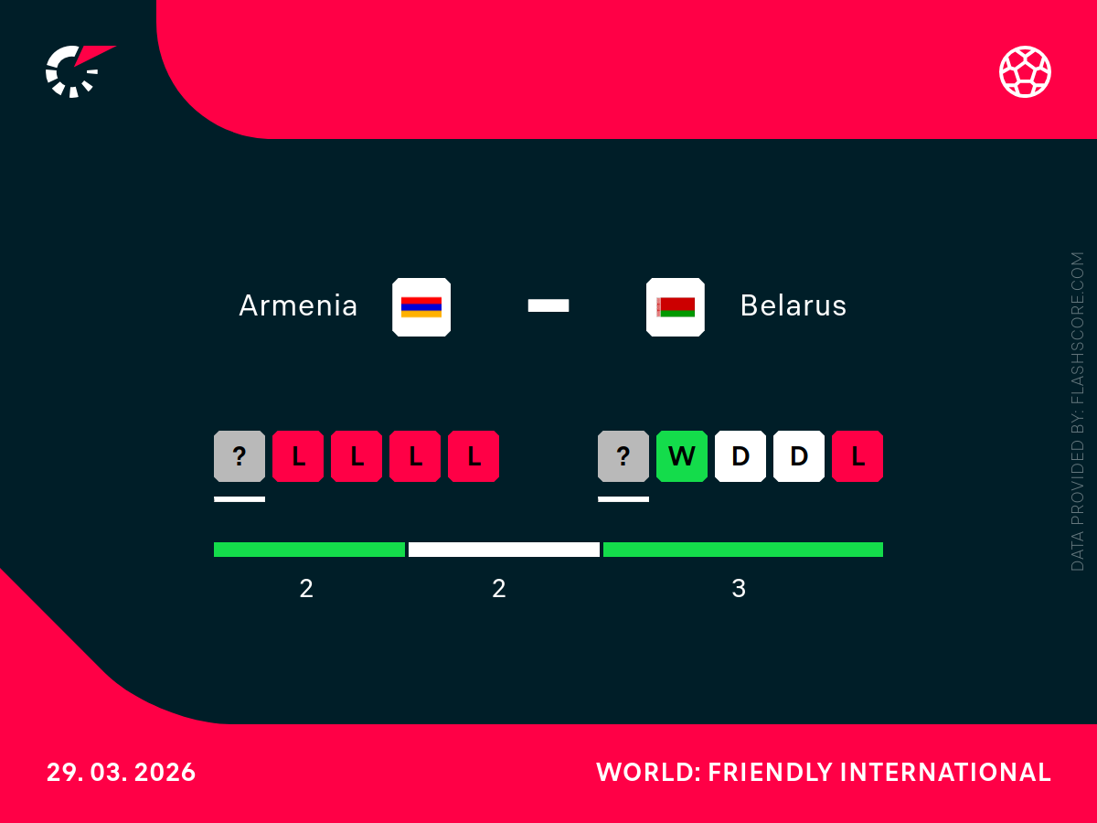 Gdzie obejrzeć transmisję z tego starcia? Mecz Armenia – Białoruś odbędzie się na Vazgen Sargsyan Republican Stadium w niedzielę 29.03.2026 o godzinie 16:00. Obejrzeć go będziemy mogli na antenie Polsat Sport Premium 1.