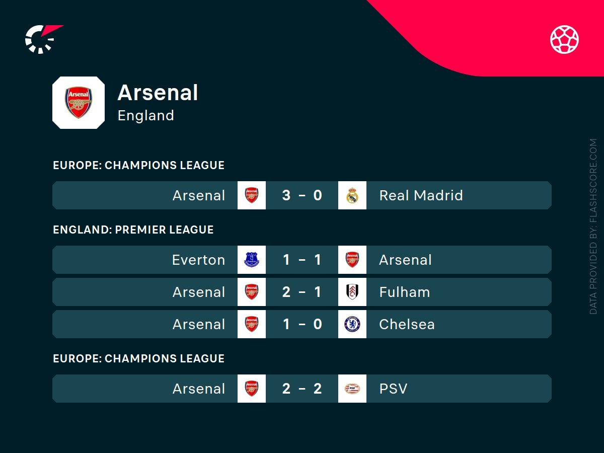 Arsenal w ostatnich pięciu spotkaniach jest niepokonany, odniósł trzy zwycięstwa oraz zremisował dwa spotkania. W jedynie dwóch spotkaniach, udało mu się zachować czyste konto, filar obrony Kanonierów, Gabriel, został zastąpiony Jakubem Kiwiorem, który że świetnej strony pokazał się w ostatnim spotkaniu z Realem Madryt.
