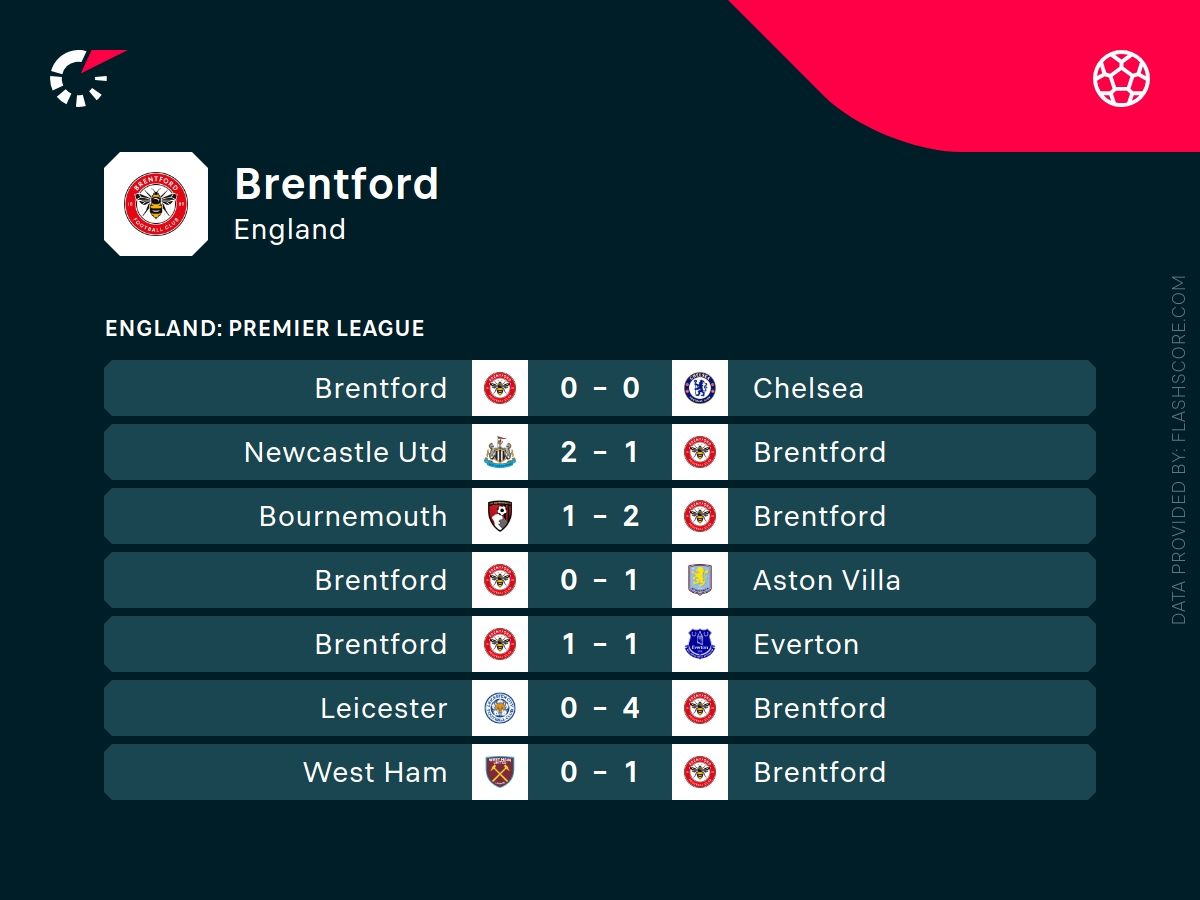 Brentford ostatnie mecze gra w kratkę, przeplatając wygraną z Bournemouth (2:1), przegraną z Newcastle United (1:2) oraz remis z Chelsea (0:0).