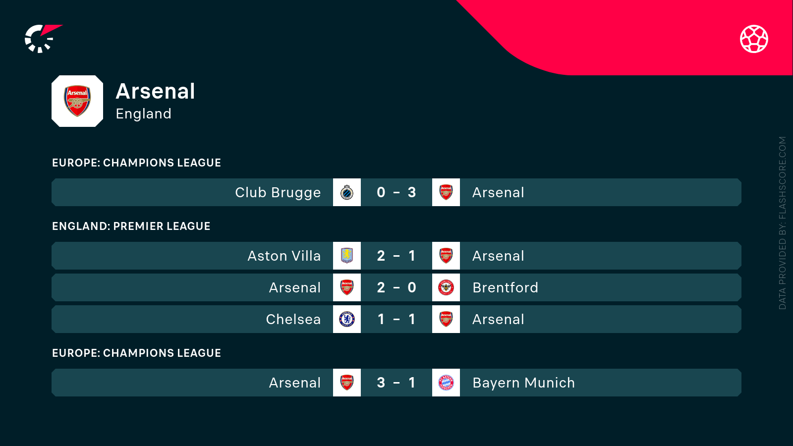 - Arsenal wygrał 3 z 10 ostatnich meczów różnicą minimum 3 bramek.