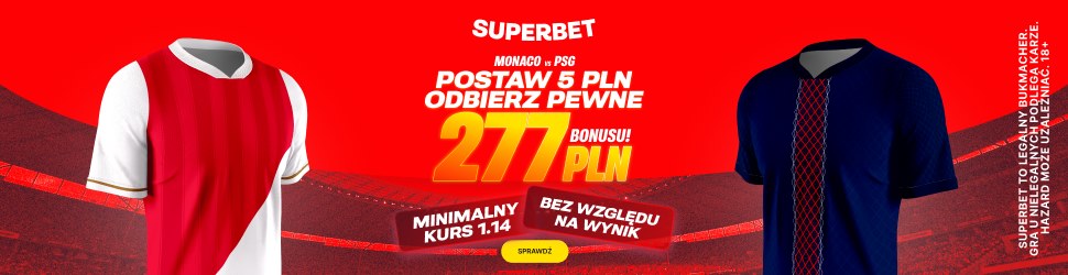 Wykorzystaj nasz kod promocyjny Superbet „GRAMGRUBO” i zgarnij pewne 277 zł bonusu za mecz Monaco – PSG + aż 255 zł w bonusach na start!