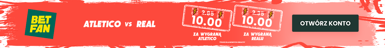 - Postaw swój pierwszy kupon SOLO za stawkę dokładnie 20 zł na wygraną Atletico lub Realu po specjalnym kursie 10.0 W TYM MIEJSCU