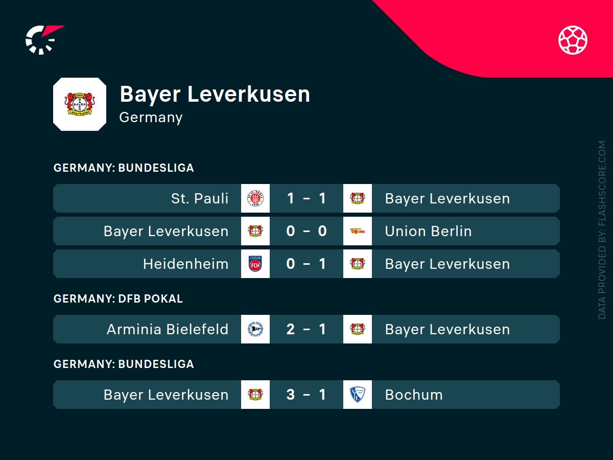 Bayer Leverkusen nie jest ostatnio w mistrzowskiej dyspozycji. Zremisował dwa ostatnie mecze ligowe, na przestrzeni ostatnich 5 meczów, wygrywając przy tym 2-krotnie i przegrywając z Arminią Bielefeld (1:2) w Pucharze Niemiec.