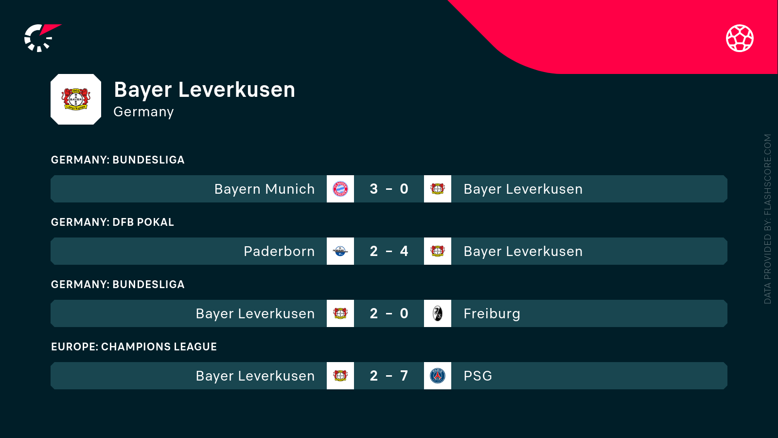 Bayer: Flekken – Tapsoba, Balde, Quansah – Grimaldo, Garcia, Echeverri, Arthur – Poku, Kofane – Schick