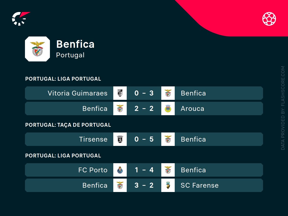 SL Benfica w ostatnich pięciu spotkaniach odniosła cztery zwycięstwa i zremisowali z Arouca (2:2). W pierwszym pucharowym starciu pokonała środowego rywala 5:0.