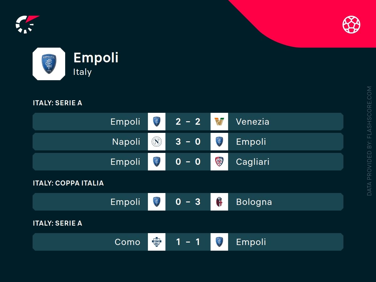 Empoli gra przeciętnie w ostatnim czasie. Na 5 poprzednich spotkań bowiem nie wygrali ani razu, trzykrotnie zremisowali oraz dwa razy musieli uznać wyższość rywali.