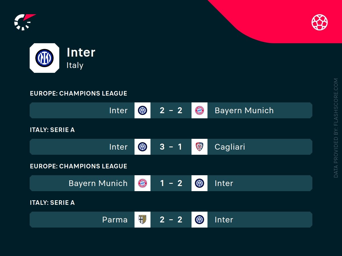 Inter zwyciężył w dwumeczu z Bayernem w Lidze Mistrzów. Mistrzowie Włoch w ostatnich pięciu ligowych spotkaniach odnieśli cztery wygrane i zremisowali spotkanie wyjazdowe z Parmą (2:2).