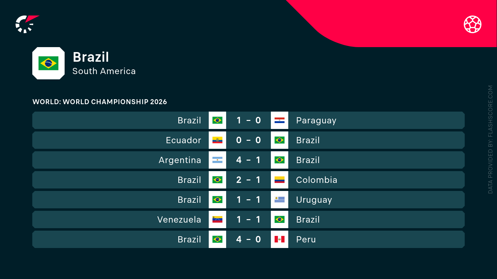Brazylia: Alisson – Vanderson, Marquinhos, Gabriel, Caio Henrique – Bruno Guimaraes, Casemiro – Raphinha, Joao Pedro, Estevao – Richarlison