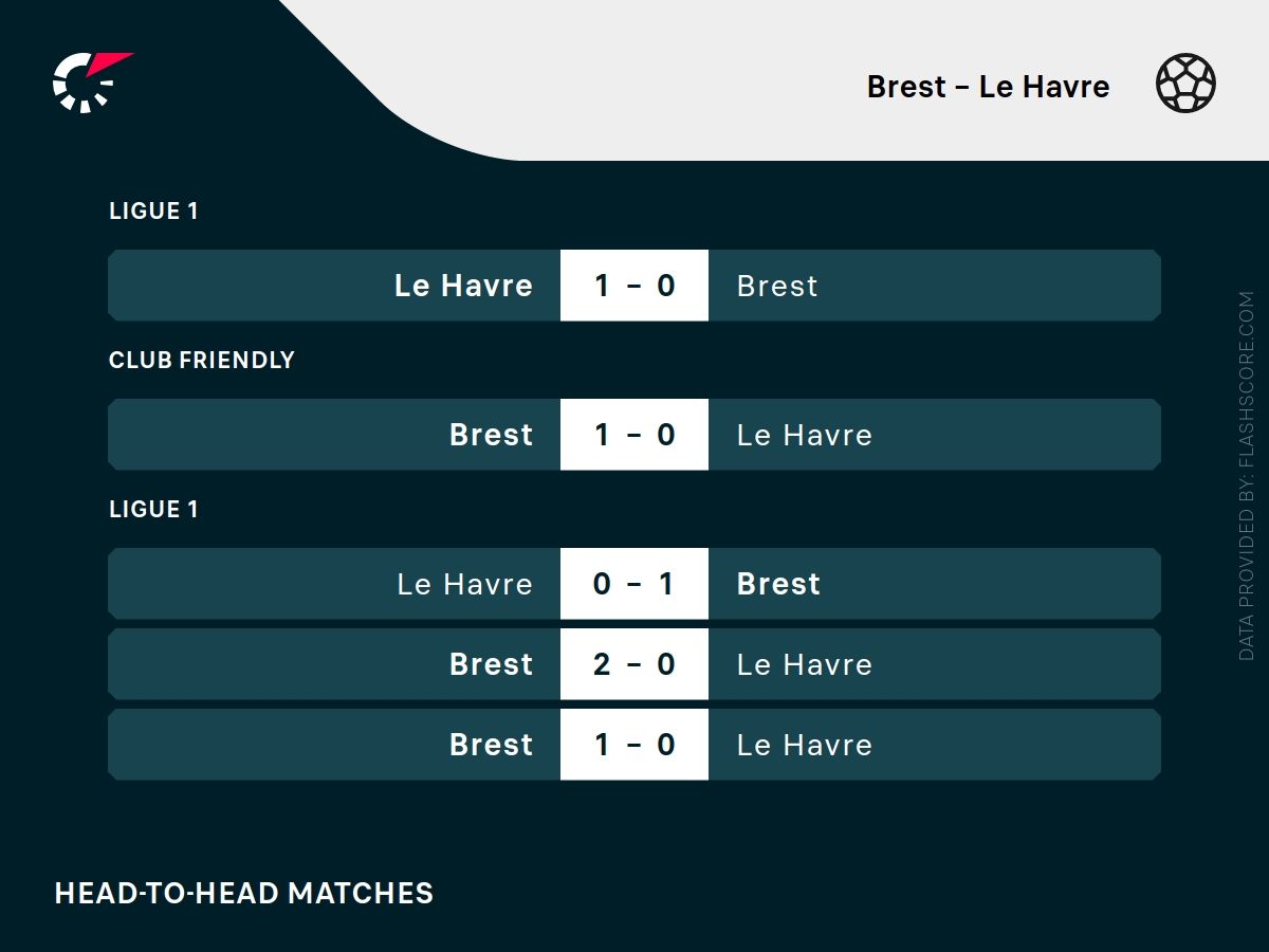 • W czterech ostatnich meczach pomiędzy Brest a Le Havre padło łącznie tylko 5 bramek, co daje średnią 1.25 gola na mecz.