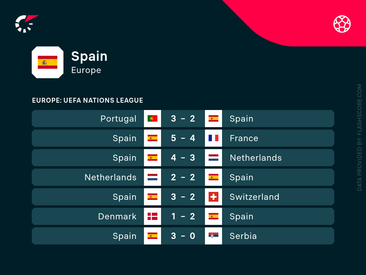 - Hiszpania strzeliła 20 bramek w ostatnich 7 meczach
