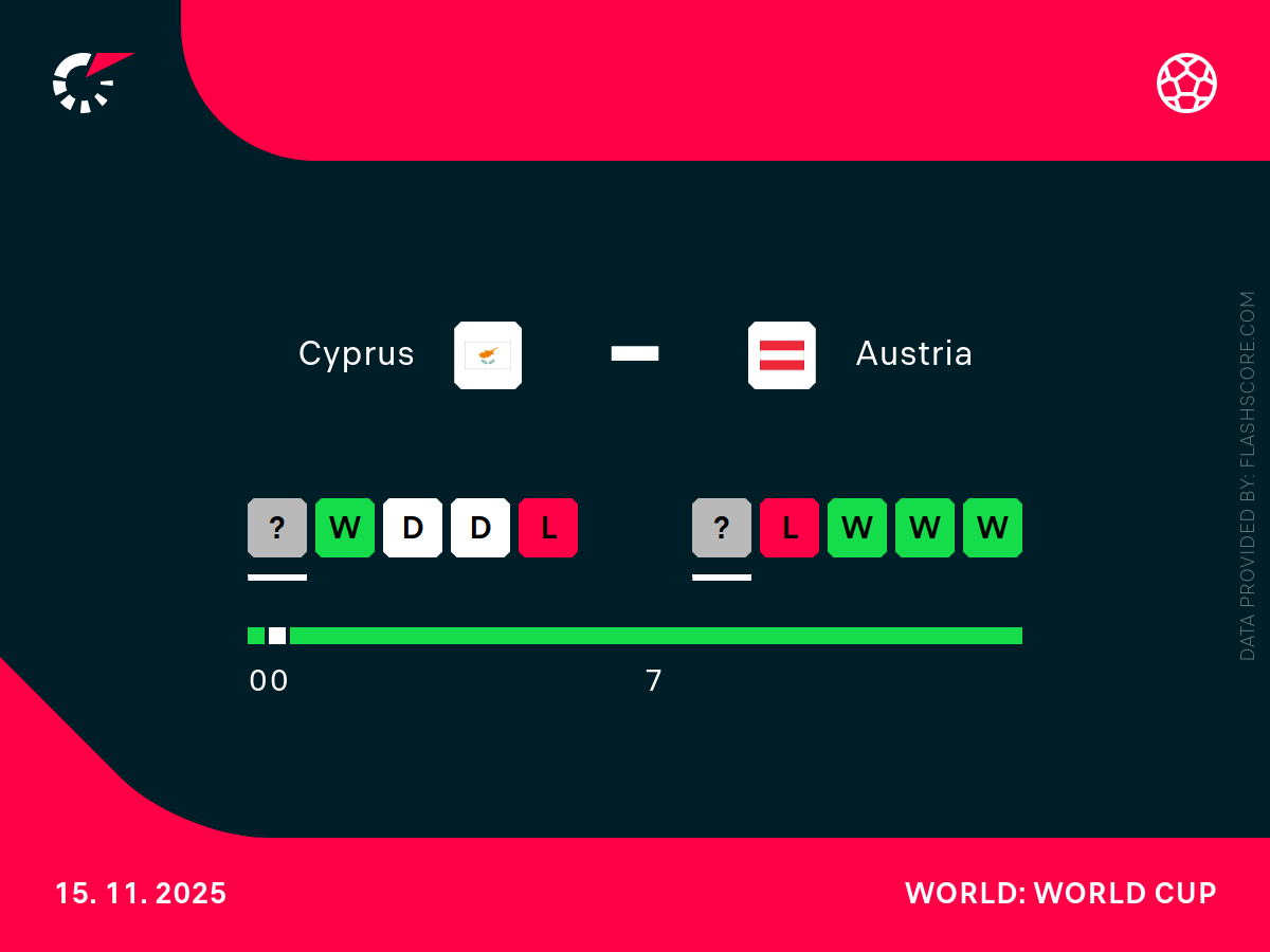 Austria to lider grupy H z 15 punktami na koncie po 6 meczach, jednak ostatnia kolejka przyniosła Austriakom bolesne rozczarowanie, ponieważ ekipa Ralfa Rangnicka przegrała z Rumunią 0:1, po golu straconym w doliczonym czasie gry. Była to pierwsza porażka Austrii w całej kampanii, przez co nie udało się powiększyć przewagi na szczycie tabeli i zespół wciąż nie jest pewny bezpośredniego awansu. Jeżeli podopieczni Rangnicka wygrają w Limassolu, a jednocześnie Bośnia i Hercegowina nie zdobędzie kompletu punktów w starciu z Rumunią, to Austriacy zapewnią sobie bezpośredni awans na jedną kolejkę przed zakończeniem eliminacji.
