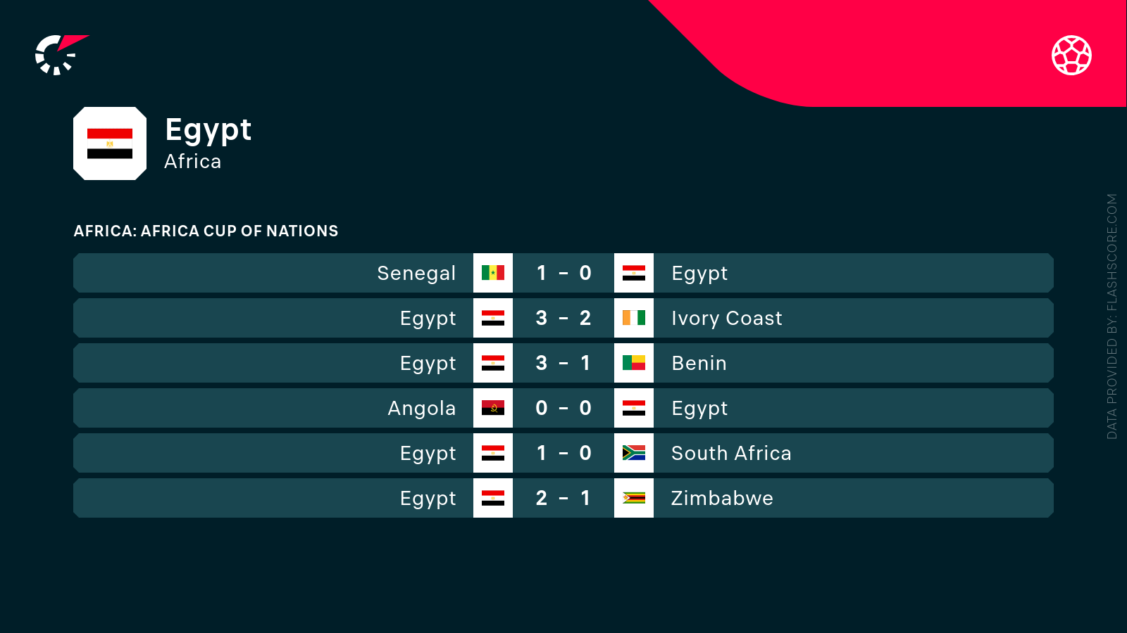 Reprezentacja Egiptu od początku imprezy była jednym z głównych faworytów imprezy, a to przede wszystkim ze względu na fakt posiadania dwóch wielkich gwiazd w ofensywie – Marmousha i Salaha. Popularni Faraonowie radzili sobie dotychczas znakomicie i pewnie ogrywali kolejnych rywali, ale w meczu 1/2 finału okazali się słabsi od Senegalu. Samo spotkanie było niesłychanie zachowawcze i defensywne, ale ostatecznie to rywale okazali się o 1 gola skuteczniejsi i Egipt zagra w rywalizacji o brązowy medal. Jednocześnie nie będzie faworytem legalnych bukmacherów.