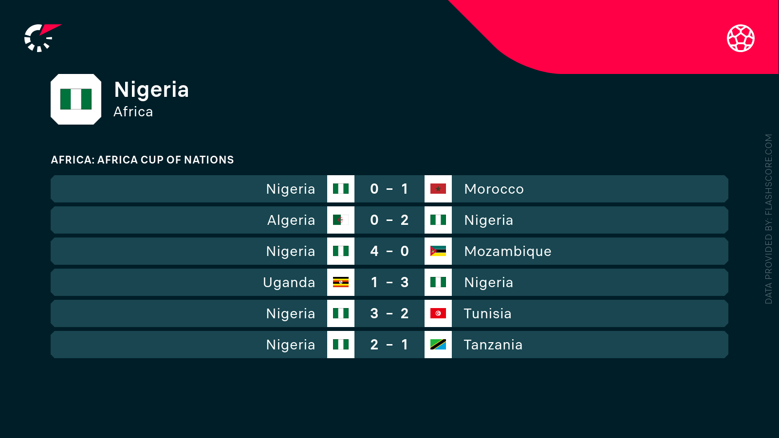 - BTTS sprawdził się w 2 z 5 niedawnych spotkań Nigerii.