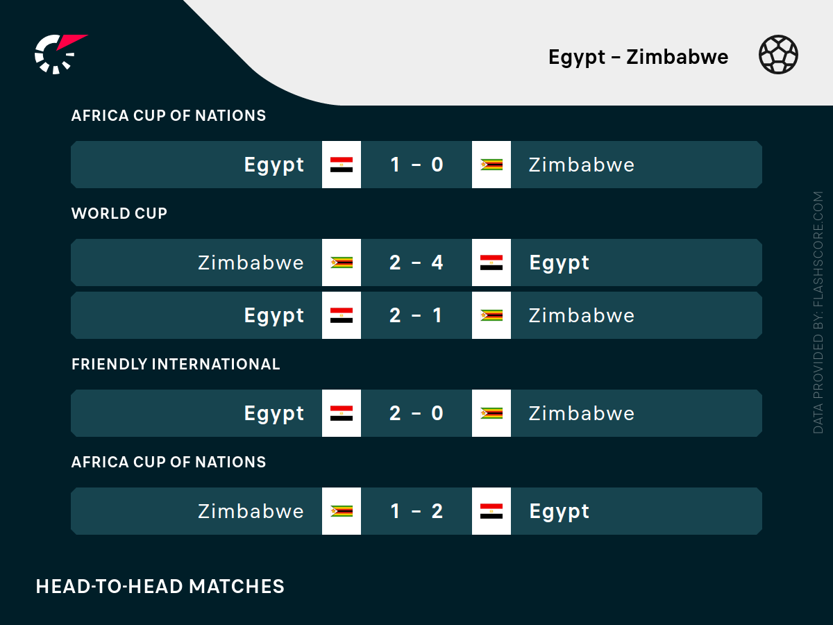 - Egipt wygrał 5 ostatnich meczów z Zimbabwe
