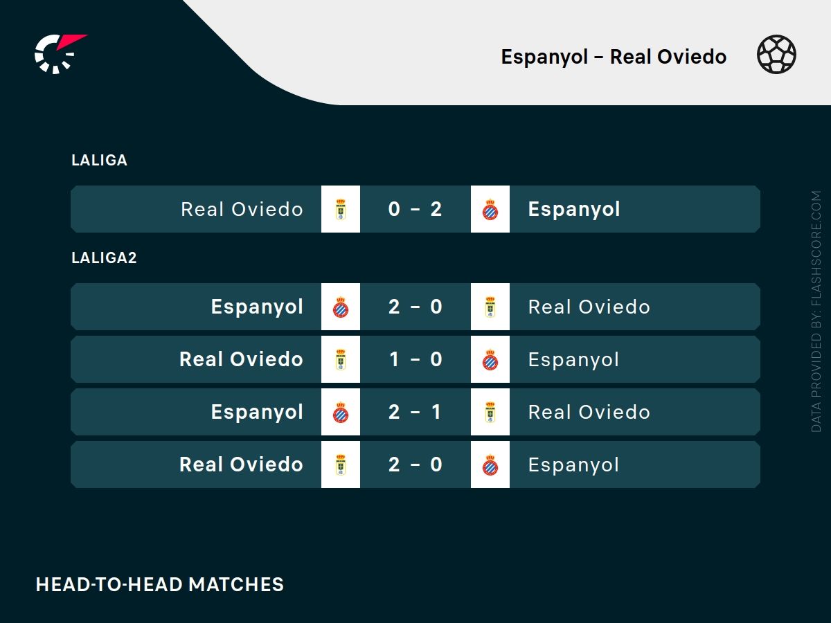 - Espanyol wygrał dwa ostatnie bezpośrednie spotkania z Oviedo bez straty bramki.