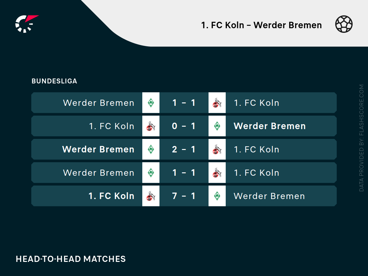 FC Koeln – Werder Brema – analiza typu i statystyki