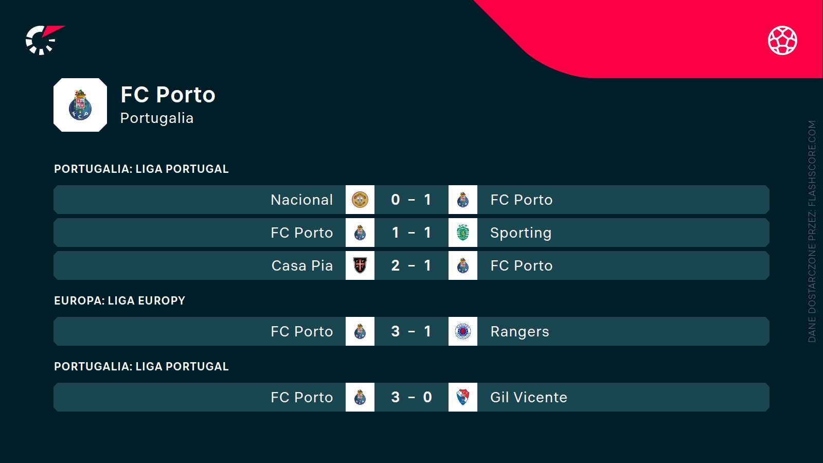 - FC Porto wygrało 19 z 22 ligowych spotkań w trwających rozgrywkach