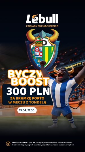 Zarejestruj się z kodem promocyjnym Lebull GRAMGRUBOPL i zgarnij 300 zł za bramkę FC Porto, oraz odbierz pakiet bonusów powitalnych o wartości 740 złotych!