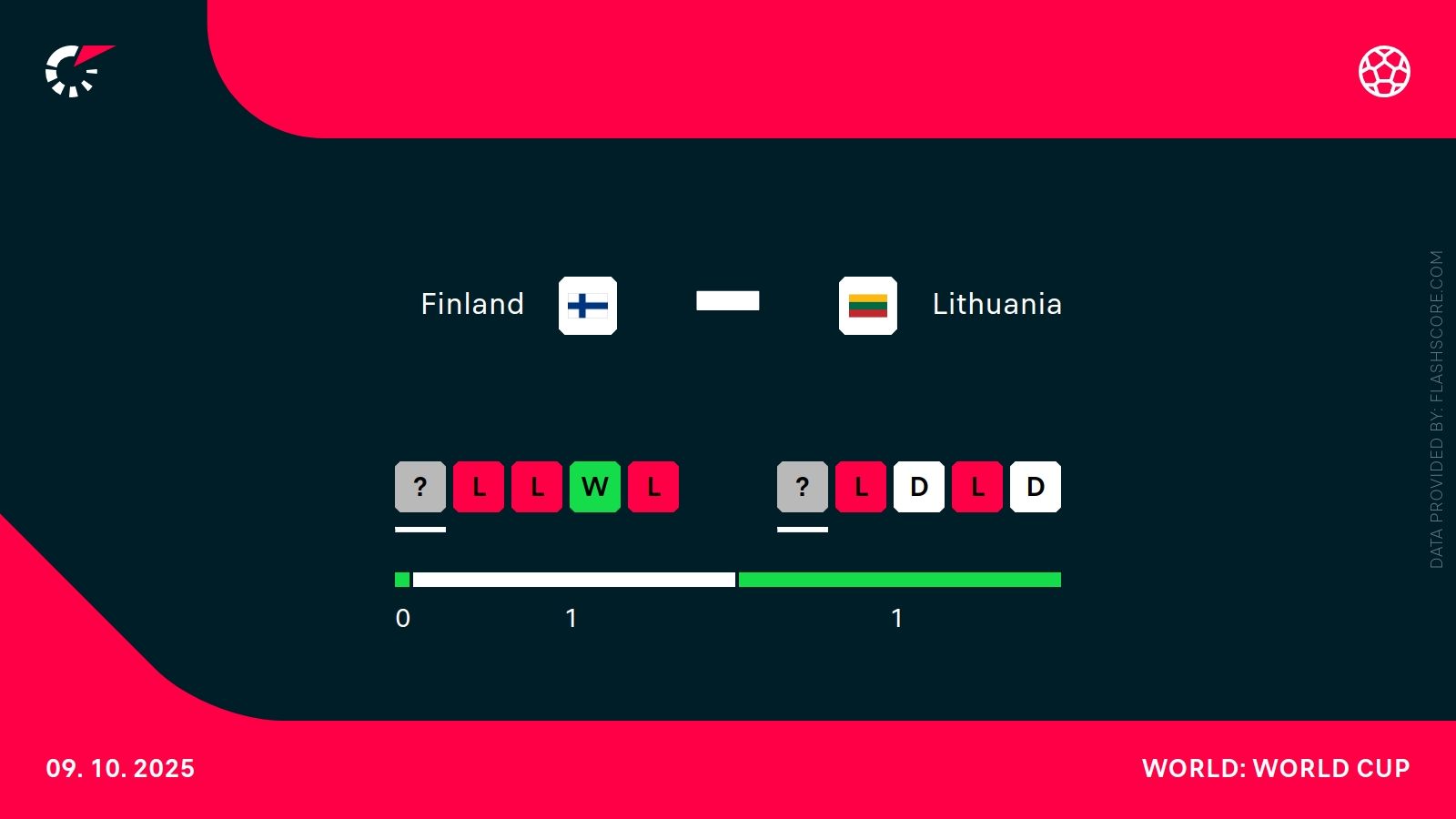 Litwa szuka zwycięstwa od czerwca ubiegłego roku i do tej pory nie wygrała w trzynastu kolejnych spotkaniach. Ostatni mecz przeciwko Holandii pokazał jednak, że potrafią postawić się silniejszym rywalom, przegrywając u siebie zaledwie 2:3. Pierwszy mecz pomiędzy tymi dwoma reprezentacjami zakończył się remisem 2:2, jednak ciężko będzie powtórzyć ten wynik. Litwini zremisowali do tej pory w grupie trzy spotkania. Oprócz wspomanianego remisu z Finami, podzielili się punktami dwukrotnie z Maltą.