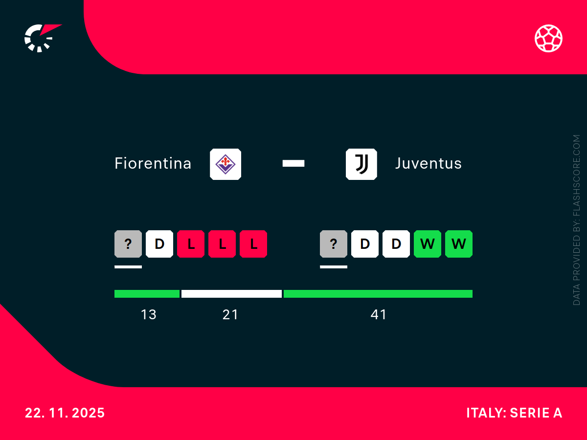 Juventus nadal zmaga się z problemami, czego najlepszym dowodem jest ostatni bezbramkowy remis w derbach Turynu, który pozostawił Starą Damę na szóstym miejscu w tabeli Serie A. Choć przed derbami udało mu się pokonać 2:1 Cremonese oraz zremisować w Lidze Mistrzów ze Sportingiem, to trudno mówić o wyraźnym odrodzeniu, bo tak naprawdę Juventus wrócił na dwa mecze i wygląda na to, że znów zaczyna serię meczów bez wygranej, a poprzednia trwała aż 8 spotkań. Juve na 6 ostatnich wyjazdach wygrało tylko jeden raz, zatem mecz z Fiorentiną to nie tak łatwe zadanie.