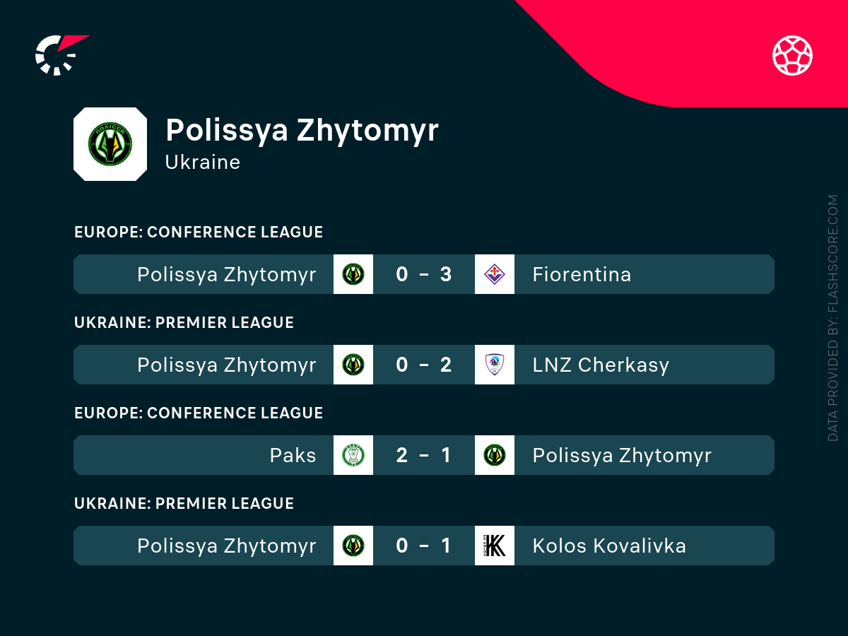 - Polissia przegrała 3 z 4 ostatnich meczów do zera