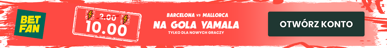 - Postaw swój pierwszy kupon SOLO za stawkę dokładnie 20 zł na gola Yamala po specjalnym kursie 10.00 W TYM MIEJSCU
