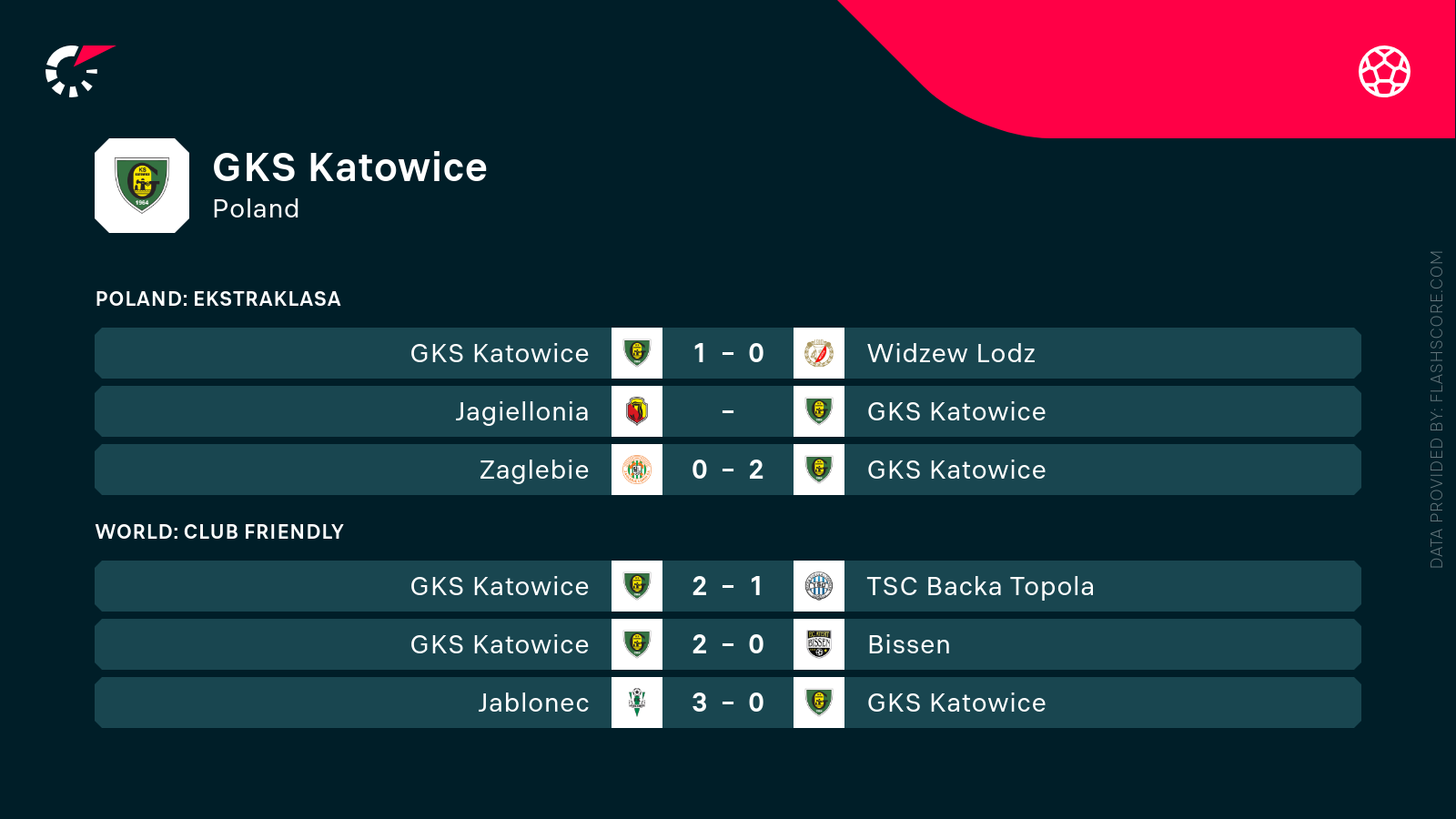 - GKS Katowice zajmuje 11. miejsce w lidze, ma na koncie 26 punktów.
