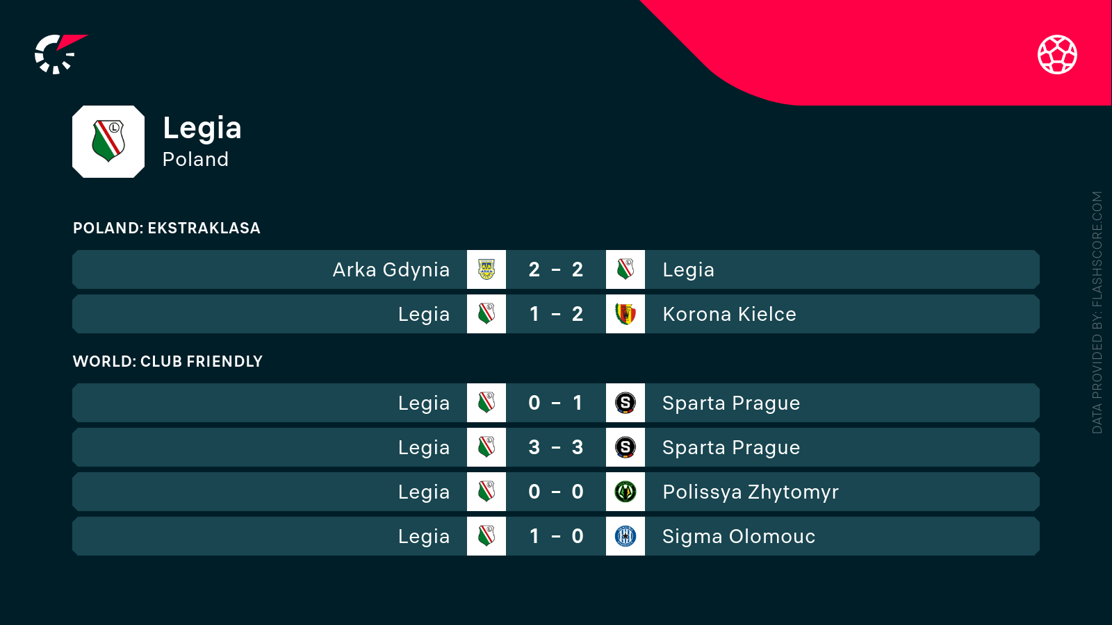 - 5 niedawnych spotkań Legii to 3 remisy i 2 klęski.