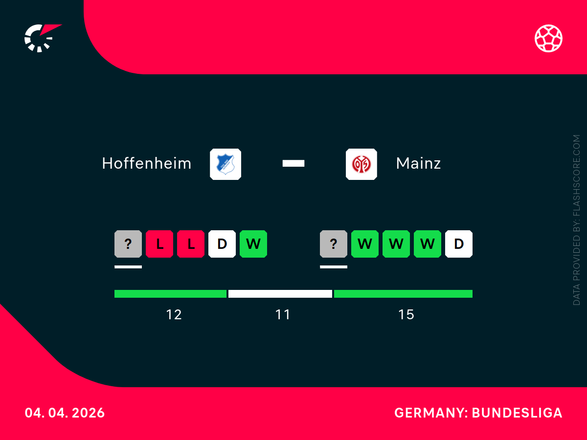 Zespół Mainz to obecnie jedna z najlepiej punktujących drużyn w środku tabeli. Seria trzech zwycięstw i dwóch remisów w ostatnich pięciu kolejkach robi wrażenie, zwłaszcza wygrana 2:1 nad Eintrachtem Frankfurt. Goscie grają w ustawieniu z trzema obrońcami, co pozwala im na szybkie przechodzenie do kontrataków i skuteczne blokowanie dostępu do własnej bramki. Mimo że w tabeli dzielą ich od rywali 20 punktów, obecna dyspozycja fizyczna i mentalna przemawia za drużyną przyjezdną, która nie przegrała z Hoffenheim w większości ostatnich bezpośrednich starć.