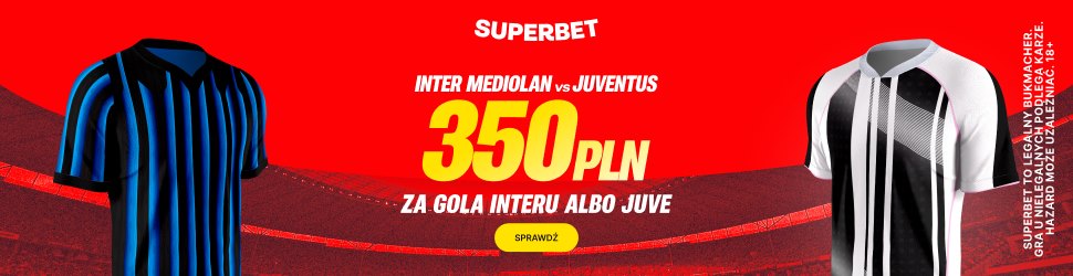 Superbet przygotował specjalną promocję dla nowych graczy, którzy zarejestrują się do Superbet z kodem promocyjnym GRAMGRUBO. Polski legalny bukmacher płaci aż 350 zł za gola Interu albo Juve! Szczegóły promocji poniżej.