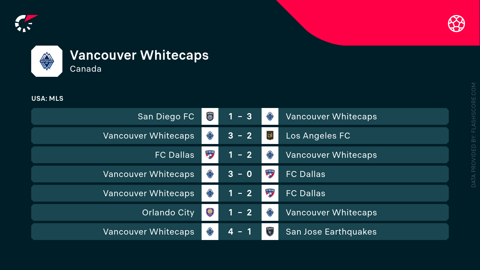 - 5 niedawnych potyczek Vancouver Whitecaps to 4 wiktorie i 1 klęska.