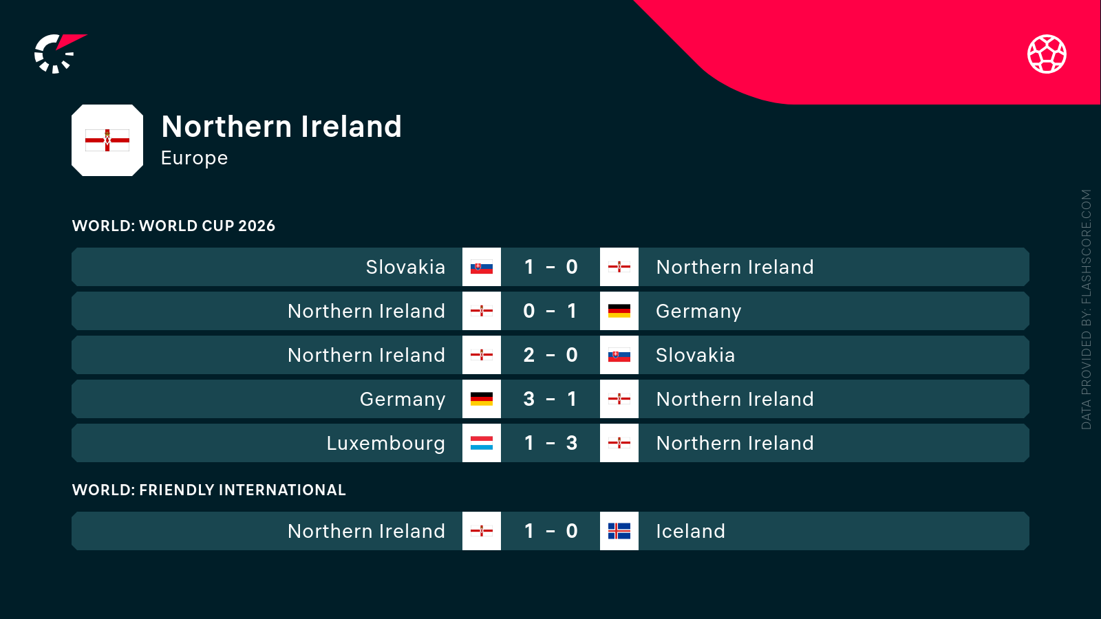 Irlandia Północna nie ma już nawet teoretycznych szans na wyjazd na Mistrzostwa Świata 2026. Wszystko to dlatego, że w ostatnim pojedynku ze Słowacją stracili oni bramkę w 91. minucie gry i w wyniku porażki 0:1 przekreślili swoje szanse na awans. Najbliższe starcie z Luksemburgiem będzie więc tylko pojedynkiem o honor, aczkolwiek legalni bukmacherzy postrzegają miejscowych jako wyraźnych faworytów. Przypomnę, że Irlandczycy w pierwszym meczu eliminacji dość pewnie ograli najbliższego rywala 3:1, a teraz zmierzą się z nim przed własną publiką. Pod spodem znajdziesz aktualne wyniki Irlandii Północnej: