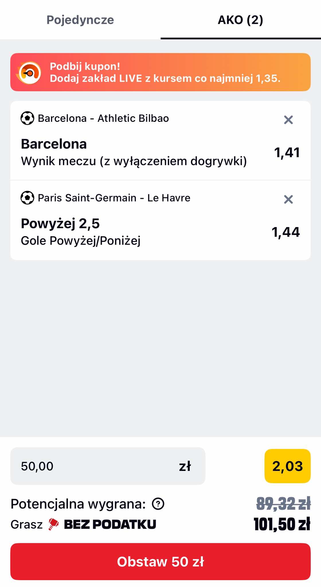Wybrałeś już zakład bukmacherski i kliknąłeś na odpowiedni kurs. Po prawej stronie znajdziesz kupon z zatwierdzonym przez Ciebie typem, a także kursem ogólnym, oraz potencjalną wygraną. Ostatnim krokiem jest wybranie stawki kuponu i kliknięcie na przycisk „Obstaw”. Kiedy to zrobisz, Twój kupon jest już w grze! Jak więc widzisz, pytanie „Betclic jak obstawiać?” wcale nie wiąże się ze skomplikowaną odpowiedzią, a sam proces grania kuponów jest naprawdę prosty i intuicyjny!