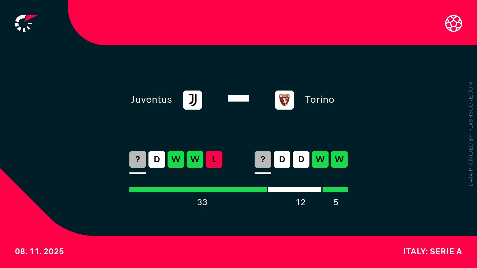 Torino nie gra ostatnio źle. Od pięciu meczów nie przegrali, notując w tym czasie trzy remisy i dwie wygrane, w tym jedną z Napoli. Na niekorzyść zespołu działają jednak spotkania bezpośrednie z Juventusem.