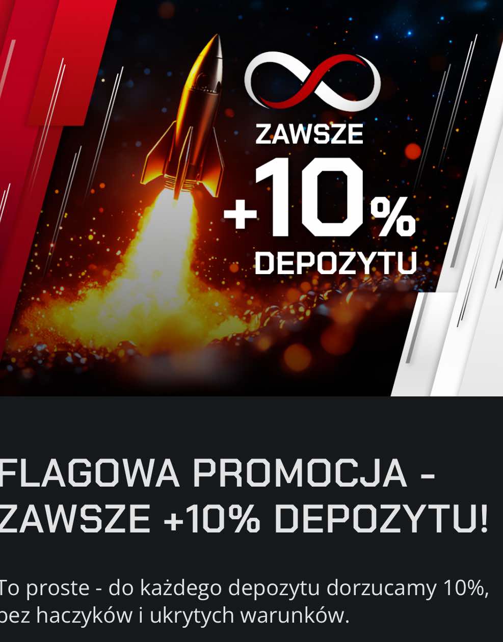 - 📋 Warunki: Zaloguj się na konto, przejdź do wpłaty, wybierz bonus 10% od depozytu i wpłać 1-20000 zł
