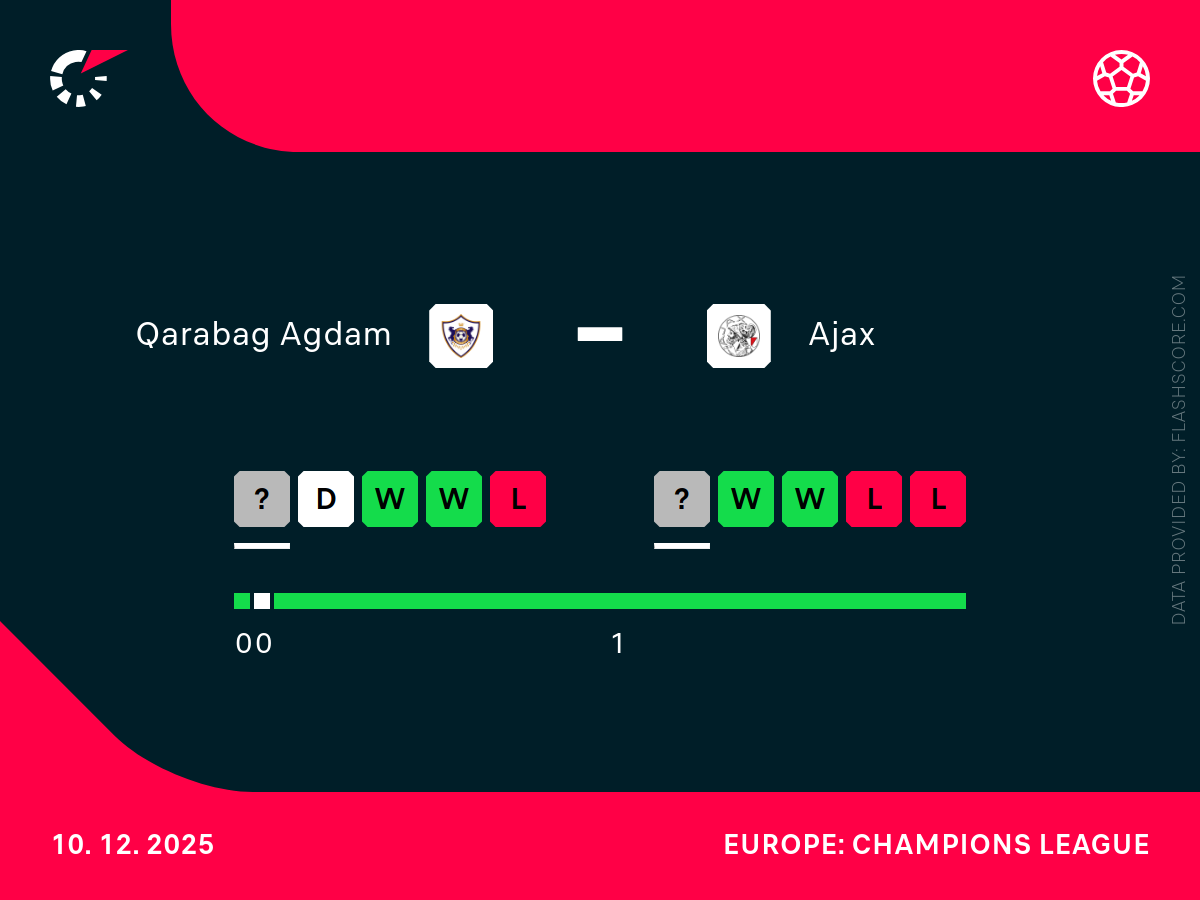 Ajax przylatuje do Azerbejdżanu w trudnym momencie. Mimo, że ostatnie dwa ligowe zwycięstwa mogą sugerować poprawę, to w rzeczywistości styl gry drużyny pozostawia wiele do życzenia, bo wygrana nad Groningen 2:0 była mocno wymęczona, a przeciwnicy zmarnowali kilka znakomitych okazji, dodatkowo jeszcze mniej przekonująco wyglądało zwycięstwo 3:1 z Fortuną Sittard, gdzie piłkarze skorzystali z dwóch trafień samobójczych rywali. Ajax to ostatni drużyna tej edycji Ligi Mistrzów, bez żadnego punktu na koncie, z najmniejszą liczbą strzelonych bramek oraz największą liczbą straconych.