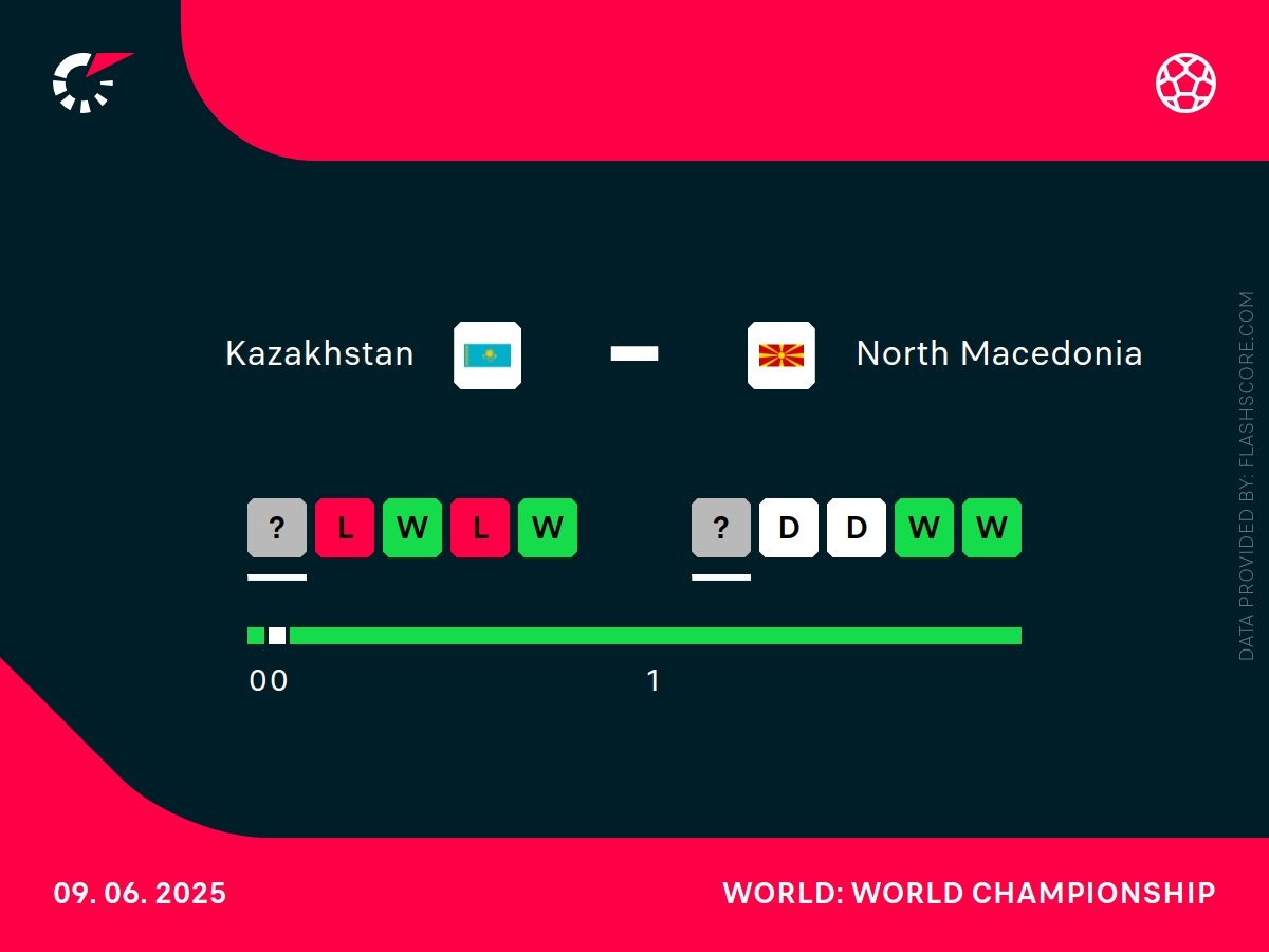 Kazachstan po dwóch spotkaniach ma trzy punkty na koncie w grupie J. Przegrali w pierwszym meczu z Walią 1:3, by w drugim pokonać Liechtenstein 2:0 na wyjeździe. Kazachowie grają ostatnio w kratkę, przeplatając wygrane spotkania z przegranymi. Macedonia Północna po trzech meczach ma na koncie pięć punktów. Zremisowali w piątek z Belgią 1:1 po golu w końcówce. Wcześniej zremisowali z Walią i pokonali Liechtenstein. Daje im to dobrą pozycję do walki o pierwsze dwa miejsca na koniec eliminacji, są niepokonani od dziewięciu spotkań.