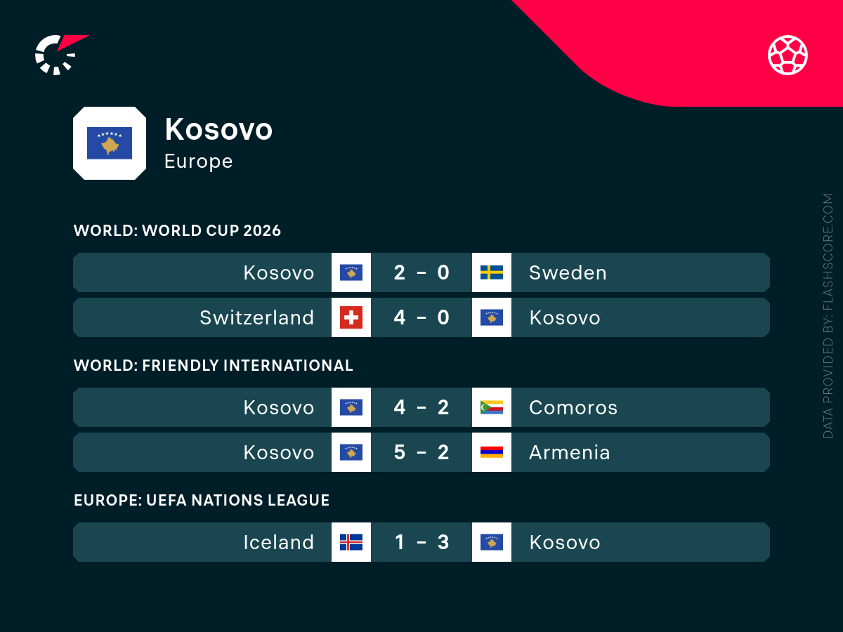 - Kosowo wygrało 9 na 11 ostatnich spotkań