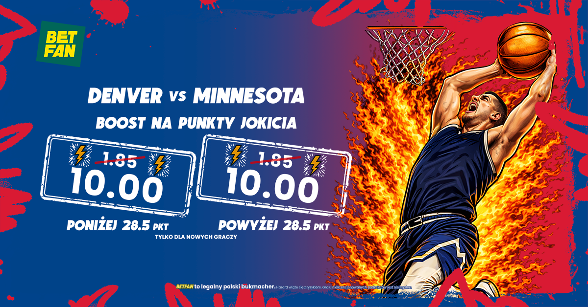 Przy współpracy z liderem rankingu bukmacherów BETFAN, mamy znakomitą promocję dla graczy, którzy zarejestrują się z kodem promocyjnym BETFAN GRAMGRUBOmożliwość zagrania zakładu na powyżej/poniżej 28.5 punktów Jokicia w meczu Denver – Minnesota, ponadto otrzymasz bonus od 1. depozytu 100% do 200 PLN (+ freebet 25 zł przy wpłacie min. 75 zł) , a także będziesz mógł skorzystać z bonusów 100% do 200 PLN od drugiego i trzeciego depozytu!
