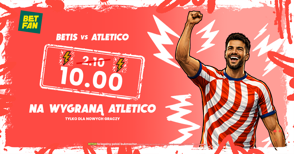 Kurs 10.00 na wygraną Atletico z Betisem od BETFAN